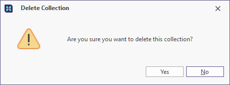 If you select a collection from the list and click Delete, a prompt will be displayed.