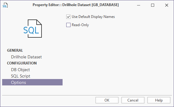 The Options tab of the Drillhole Dataset form contains options that can be applied to your drillhole dataset.
