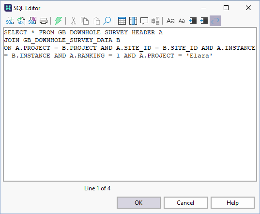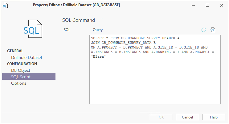 If you want to build the drillhole dataset using an SQL script, click the SQL Script tab.