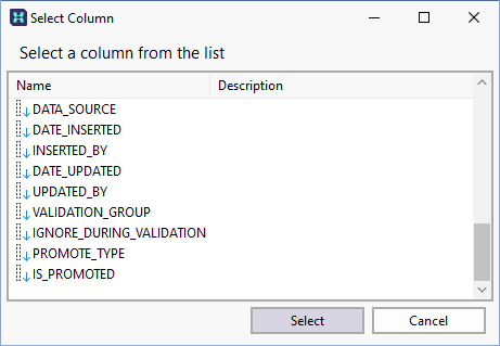 The column you select will be added as a virtual field in the Data Format page (not in the file itself). You can then populate the field with default values. A virtual field may need to be added, for example, when a required field in the destination table is not present in the input file. |