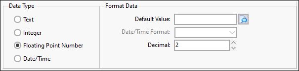 Depending on the data type of the current field, you can also specify Decimal precision or a Date/Time format.