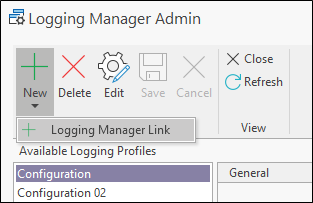 Click the Save button in the Logging Manager Admin ribbon to save the new logging manager link.