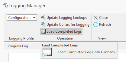 The Load Completed Logs button is used to upload completed log data synchronised from Geobank For Coal Field Geologists with the configured central database.