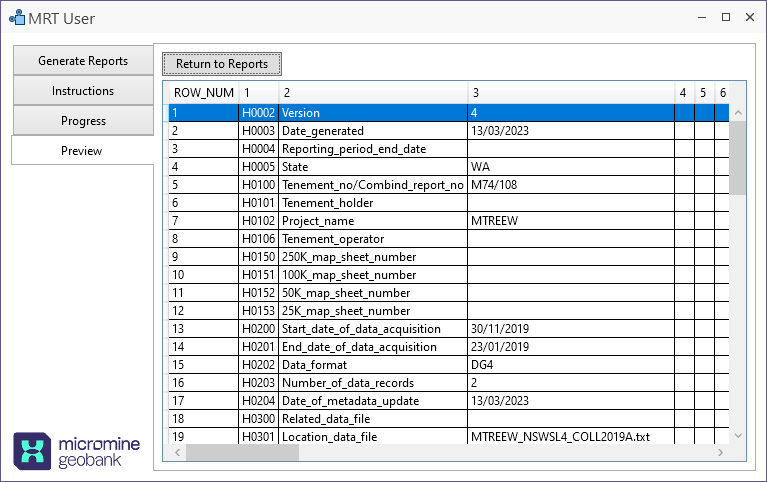The Preview tab of the MRT User App contains a preview of the currently configured MRT report and selected template. The Preview tab is populated when clicking the Preview Template button on the Generate Reports tab.