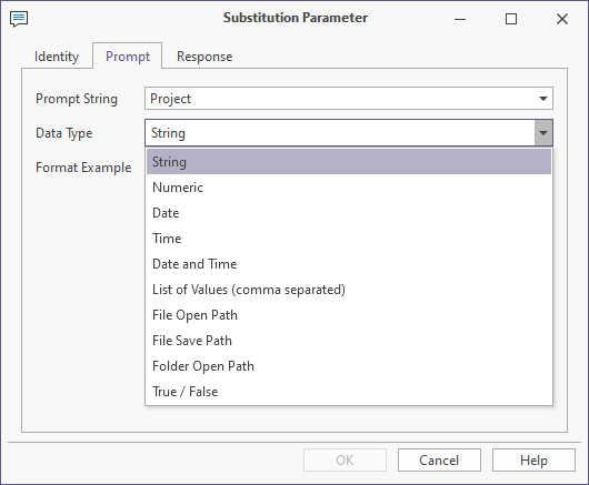 Use the Prompt tab of the Substitution Parameter form to define what the user will be prompted for: