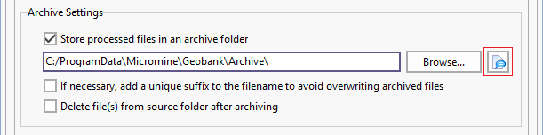 When configuring an Import, to keep track of what data has been imported, you can choose to store your processed files in a nominated archive folder.