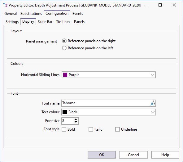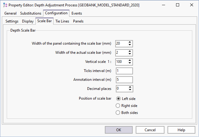 Use the Configuration page of the Depth Adjustment Property Editor, to configure the settings, scaling and panels of a depth adjustment process.