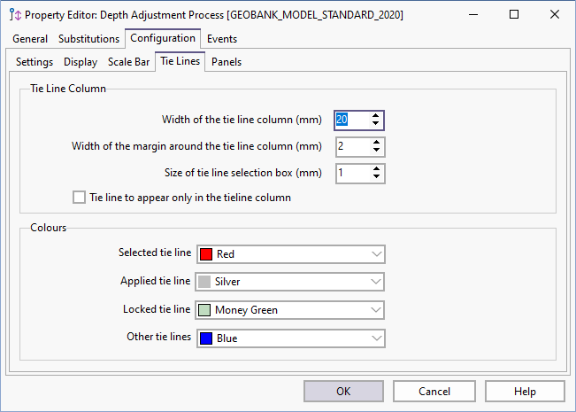 Specify the width of the tie line column, the width of the tie line column margin, and the Size of the Tie line selection box.