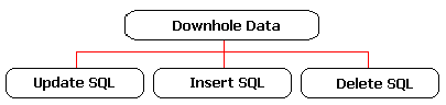 At runtime, the SQL scripts are opened in a master-detail relationship to the downhole data, as shown in the following diagram.