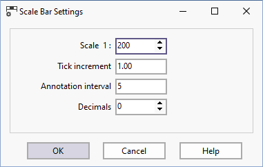 Click the Scalebar Settings button, or select the Custom Settings option from the right-click menu to change the properties of the vertical scale bar.