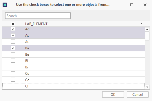 Use the dialog that opens to select the check box for any element/s to add to the report and click OK: