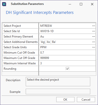 You can optionally enter the Maximum Internal Waste value which will apply to the significant intercept. If there is a higher waste value within the indicated intercept, it will not be reported.