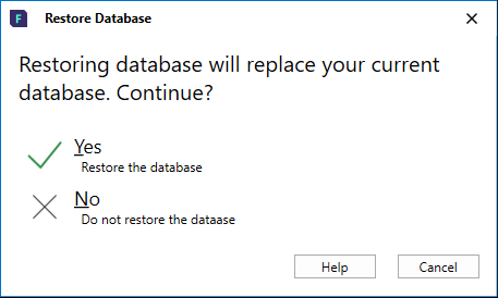 The database contains all the profiles in Micromine Geobank For Field Teams, so the Restore restores all profiles and data to the state they were in at the time of the backup. If in doubt export your profiles as .gmp files with data before carrying-out a restore.