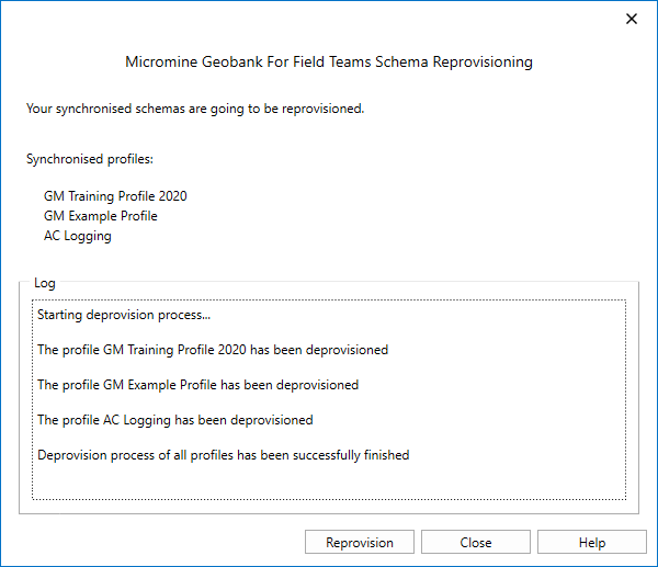 To restore the database and maintain the Sync, Micromine Geobank For Field Teams will de-provision the sync and then r`e-provision the sync after the restore. This will mean that the data in the restored database will be the most current data and may overwrite changes made by other users since the backup was done. New rows added by other users since the backup will not be affected; only rows which existed at the time of the backup and have subsequently been updated by another user; these rows will be restored to the state they were in at the time of the backup.