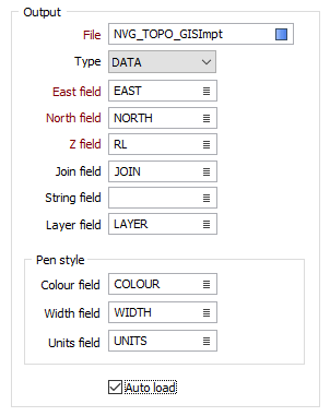 If native colour and style information is available, this information is used to populate COLOUR, WIDTH and UNITS fields in the Output file. If you prefer not to output this information, clear the field prompts.