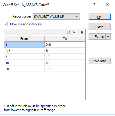 Select this option to manually enter (or edit the calculated) From-To interval ranges to allow for missing (non-continuous) intervals. If this option is not selected, it is assumed that the intervals are continuous and you can only enter a start (From) value and the upper (To) ranges of each interval.