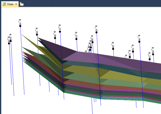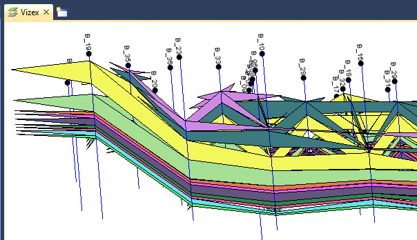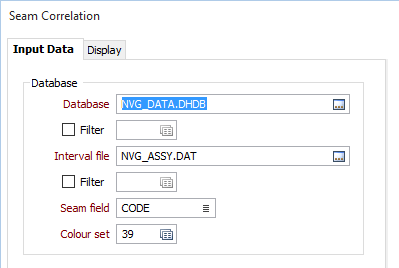 As well as providing a validation tool, seam correlation can guide you in areas of uncertainty. Filters can be applied both to the holes (DHDB) and to the (Interval file) seams being displayed.