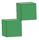 An invalid connection occurs when an edge of a triangle is shared by more than two triangles. Micromine's advanced topological checking will allow an even number of triangles to share the same edge. This is valid when two cubes touch on an edge. |