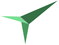 An odd number of connections is generally considered to be invalid. When a third triangle lies inside a solid, it is referred to as a hanging sheet. You can use Wireframe | Utilities | Repair to remove them. |