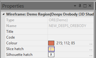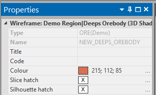 - Display the wireframe in Vizex. Then select it and open the Property Pane: