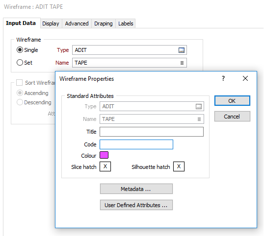 You can interactively change the Default Hatch (the hatch stored in the wireframe), by double clicking on the patch (to bring up the Fill Pattern dialog) and editing the hatch. When both the foreground and border colour are NULL (or foreground is NULL and the border colour is set to Use foreground), then the wireframe colour will be used for both foreground and border. In this case, the patch colour (in the Properties Pane) will be a light grey. However, in the Fill Pattern dialog itself the Sample will not be displayed and the patch in the Wireframe Properties will appear blank.