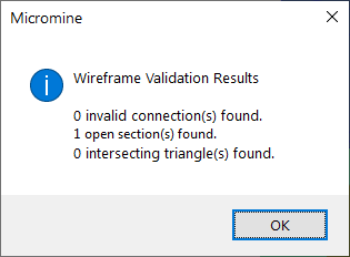 If you click Validate DTM on the Wireframe tab, in the Validate group, or select Validate DTM as the validation option in the Wireframe Manager (see below) you can also check that a surface is a valid DTM.