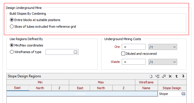 В качестве альтернативы методу объединения блоков регуляризованной блочной модели в Майкромайн для оптимизации выемочных единиц применяется «метод срезов», с помощью которого создаются группы срезов блоков.