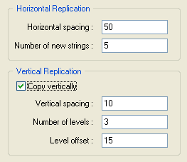 Задайте сколько новых стрингов будет создано в результате копирования. По умолчанию стринг будет продублирован в направлении, перпендикулярном линии между начальной и конечной точками стринга. Чтобы продублировать стринги в противоположном направлении, задайте отрицательное значение для шага по горизонтали.
