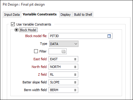 Выберите эту опцию, чтобы применить изменяющиеся условия, заданные в файле блочной модели (ограничения карьера).