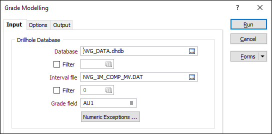 В диалоговом окне Моделирование содержаний вы можете также указать нижнюю и верхнюю границы гистограммы. В идеальном варианте вам нужно использовать опцию Вдоль скважин (во вкладке Скважины, в группе Композиты) для объединения вводных данных, чтобы получить достаточно длинные интервалы (в разумных пределах), включая интервалы пустой породы.