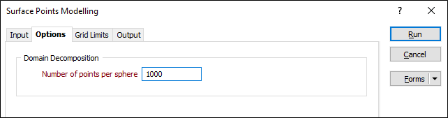 Во вкладке Опции, в диалоговом окне Моделирование по редким точкам, задайте параметры, которые определят область поверхности для интерполяции.