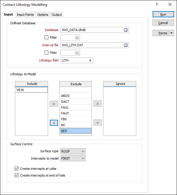 Когда вы выбираете допустимое поле литологии, окно Исключить заполняется полным списком кодов литологии. Используйте стрелки, расположенные между окнами Включить, Исключить и Игнорировать, чтобы выбрать коды, которые вы хотите включить, исключить и игнорировать.