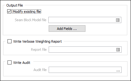 Чтобы записать результаты обратно в исходный Файл блочной модели пластов, поставьте галочку в поле Изменить имеющийся файл. В ином случае, введите (или выберите двойным щелчком) имя Файла блочной модели пластов на выходе.