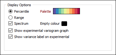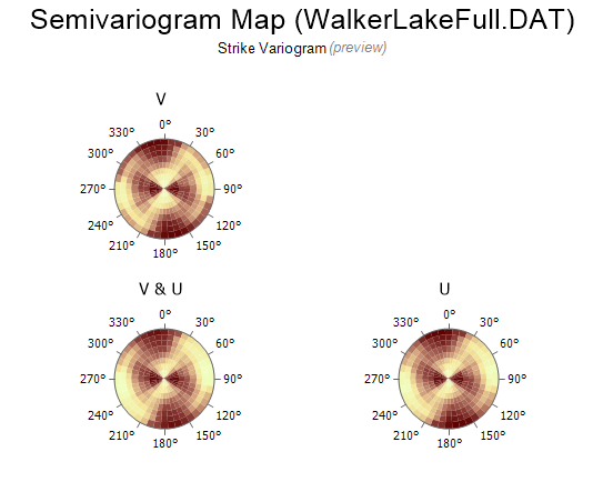 Функция Карта полувариограммы используется для отображения полудисперсии в традиционном полярном (сферическом) отображении. Плоскость изображения можно разместить в трехмерной ориентации. Параметры просмотра (такие как интервалы времени, количество направлений и наложение) корректируются в динамическом режиме с помощью бегунков, вследствие чего обновление вида происходит практически мгновенно.