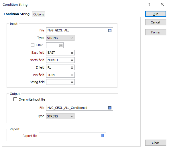 В формах, которые требуют полилиний в качестве входных данных, значения в этом поле определяют, должны ли точки данных во входном файле быть соединены линией. Если последовательные записи имеют одинаковое значение в этом поле, они будут объединены в одну линию. Если требуется двухфакторная топология, значения в Поле стрингов также можно использовать для сегментирования линий.
