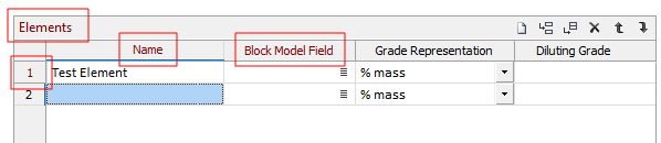 Grid titles displayed in red ("Elements" in the example below) indicate that at least 1 row must be specified in the grid.