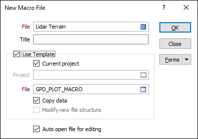 Click New | New Macro in the File Editor tab to create the default structure for a Macro file. Alternatively, use a template to copy the structure (and optionally the data) from an existing file.