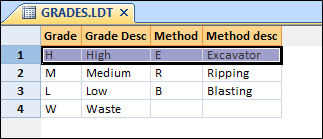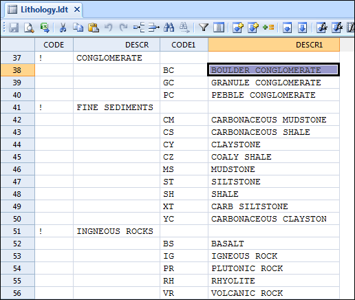 The fields in the Lookup table can have any name or width. You can set default field widths for the Code and Description fields in Options | File Editor (click the Project tab to open the backstage menu). The field order is important because it reflects the menu structure that will be created. The first pair of fields will appear as the first level in the menu, the next pair as the second level in the menu, and so on.