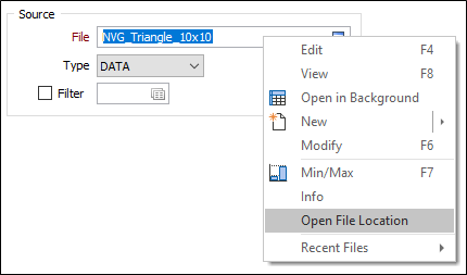 • In a form, right click on a File input and select Open File Location to locate that file in the File Explorer: