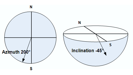 - Inclination is measured relative to the horizontal, ranging from +90° (vertically up) to -90° (vertically down). This is the same sign convention as drillholes;