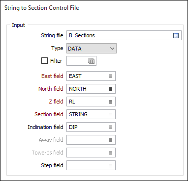 In the String to Section Control File form, select a file type and then double-click (F3) to select the input file that contains the strings you want to use to define your sections.