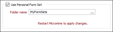 Select this option to create a personal form sets folder within a project folder. Enter or double-click (F3) to select the name of the folder.
