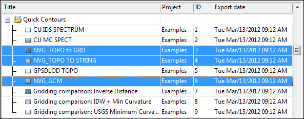 By default, the form sets in each group are sorted by Title. To sort by Project, ID or Export date, double-click on the appropriate column header.