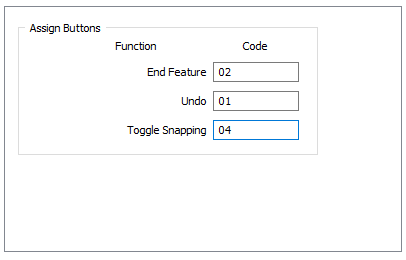 Buttons are assigned to digitiser functions on the Digitiser tab of the Vizex Options form. Any button that is not assigned here will add a point to the current string, or create a new string and add a first point.