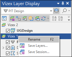 You can rename a Vizex instance in the Vizex Layer Display pane by right-clicking on the Instance name and selecting Rename from the menu. Alternatively, select the name and press F2.