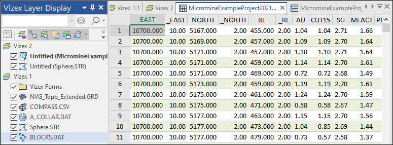 You are not restricted to only displaying your data spatially. For Micromine data types, when an object is selected, you can right-click and select the Open Input File menu option for the current display layer.