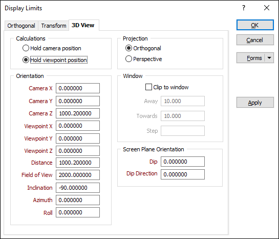 Use the 3D View tab of the Display Limits form to view the limits of the display in 3D.
