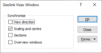 Whenever two or more windows are linked, they will stay in sync as you draw a new section, use the Next or Previous buttons to browse sections, pan the view from side to side, or make zoom changes. The exact level of synchronisation will depend on the options you have selected.