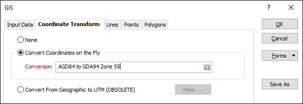 Select the Convert Coordinates on the Fly check box to convert between coordinate systems prior to displaying the data.