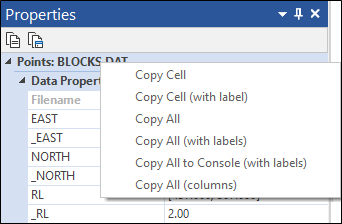 Use the options on the right-click menu to copy selected properties to the clipboard. You can then paste (CTRL + V) those properties into a text editor or a worksheet.